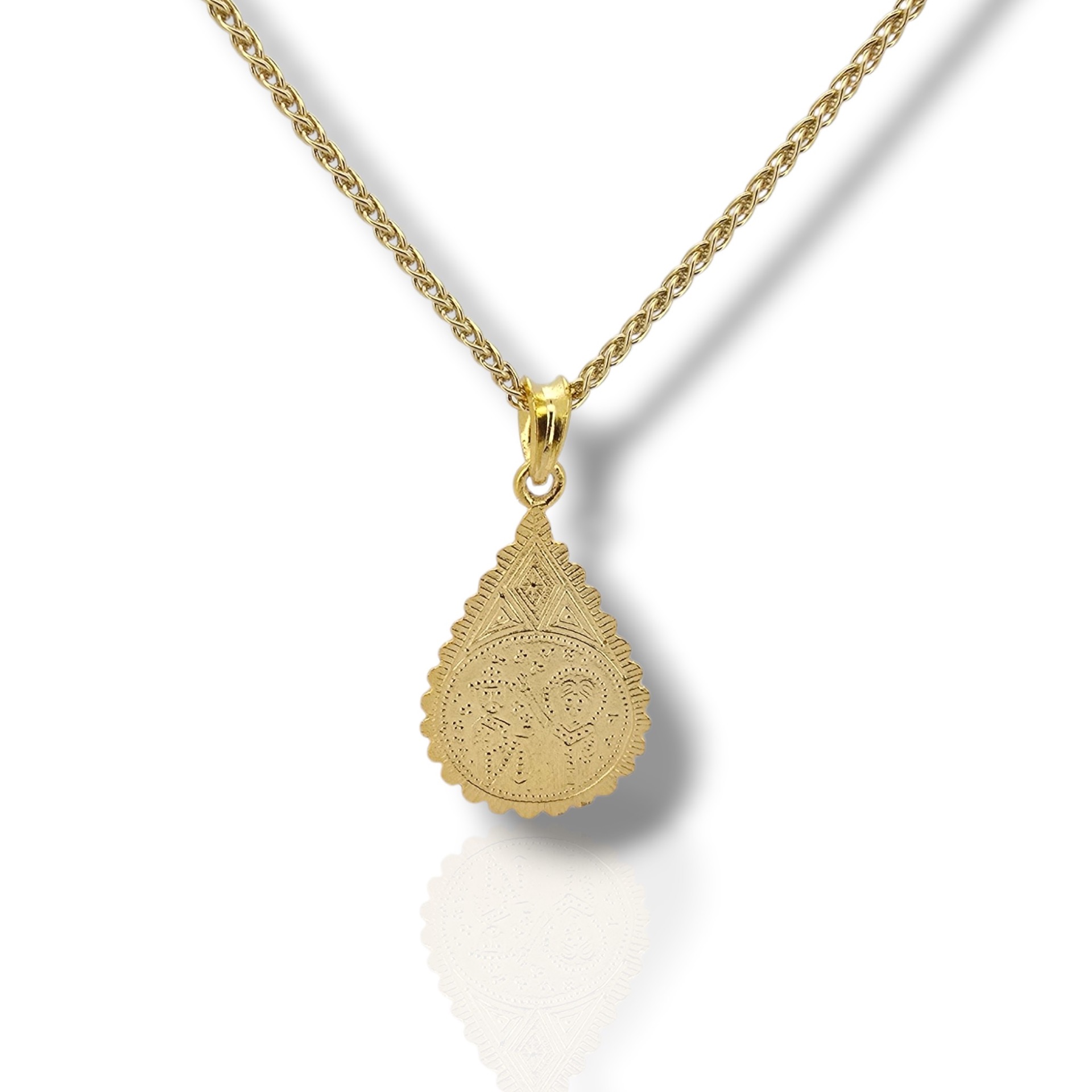 Ένα κλασικό και διαχρονικό κόσμημα με βαθιά παράδοση. Αυτό το χειροποίητο Κωνσταντινάτο είναι κατασκευασμένο από ασήμι 925 με επιχρύσωση, προσφέροντας την τέλεια ισορροπία μεταξύ πολυτέλειας και ανθεκτικότητας. Στη μία όψη απεικονίζονται οι Άγιοι Κωνσταντίνος και Ελένη, ενώ η πίσω όψη φέρει το παραδοσιακό "IC XC NI KA". Συνοδεύεται από κομψή επίχρυση αλυσίδα, αποτελώντας ένα ιδανικό δώρο φυλαχτό για εσάς ή τους αγαπημένους σας.