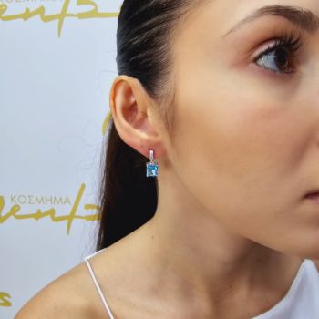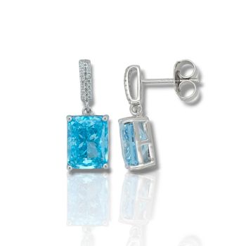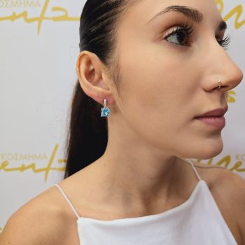 Ασημένια σκουλαρίκια με λευκά ζιργκόν και συνθετικό Μπλέ Tοπάζι 9.0mm x 7.0mm