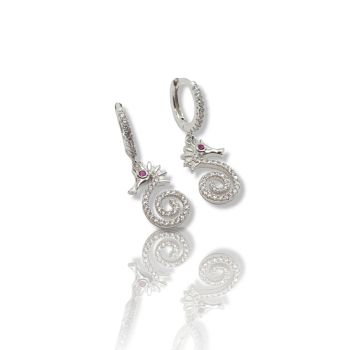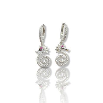 Σκουλαρίκια με ιππόκαμπο απο επιπλατινωμένο ασήμι 925° (code FC002864)
