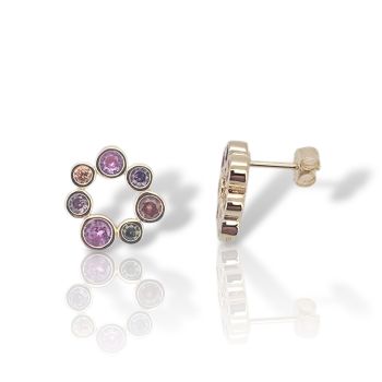 Ασημένια σκουλαρίκια επιχρυσωμένα με κίτρινο χρυσό και συνθετικές πολύχρωμες πέτρες
