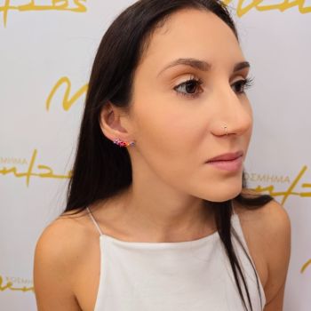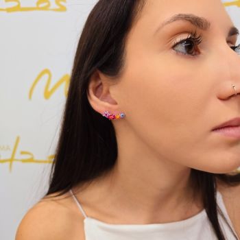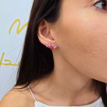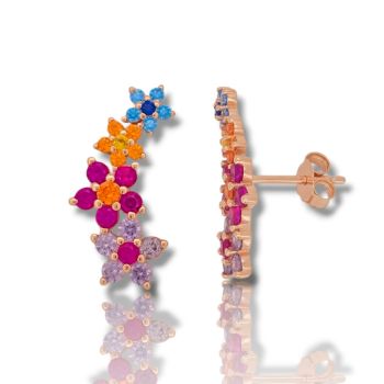 Ασημένια σκουλαρίκια επιχρυσωμένα με ροζ χρυσό και συνθετικές πολύχρωμες πέτρες