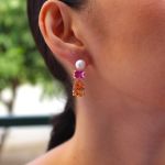 Ασημένια σκουλαρίκια επιχρυσωμένα ροζ, με συνθετικές πέτρες.
