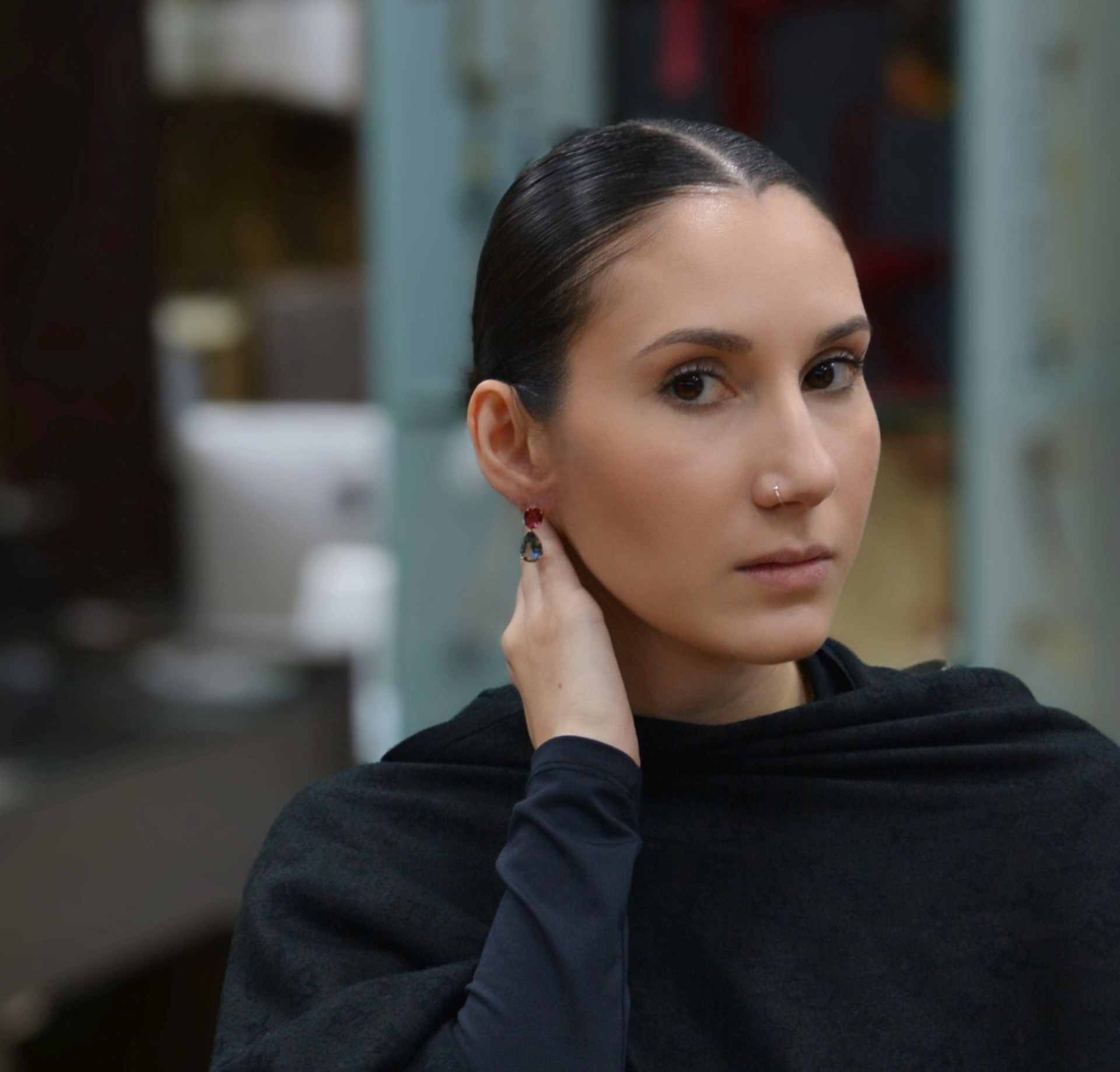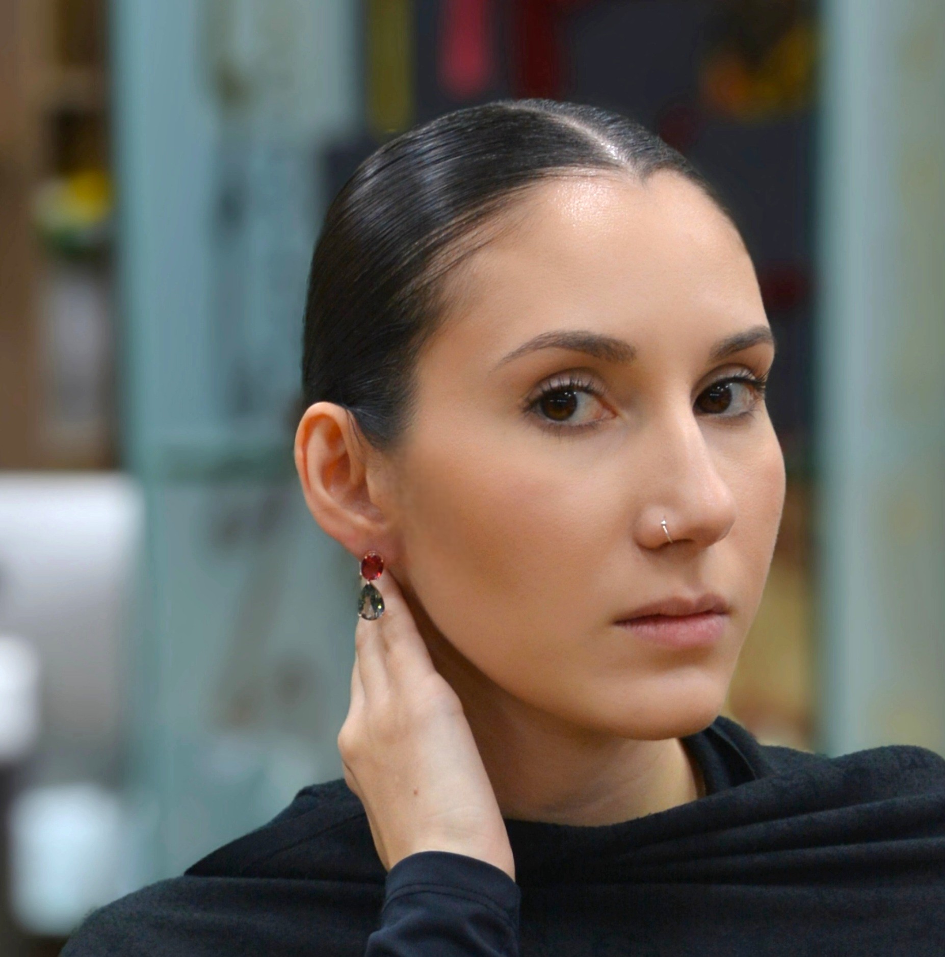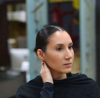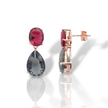 Ασημένια σκουλαρίκια επιχρυσωμένα ροζ, με συνθετικές πέτρες.