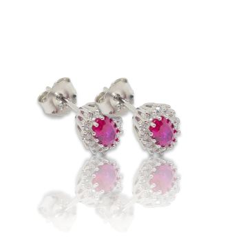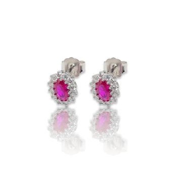 Ασημένια σκουλαρίκια επιπλατινωμένο και λευκά ζιργκόν & συνθετικό ρουμπίνι
