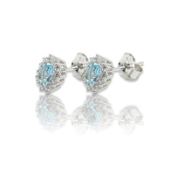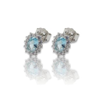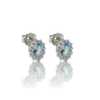 Ασημένια σκουλαρίκια επιπλατινωμένο και λευκά ζιργκόν & συνθετικό μπλε τοπάζι