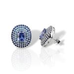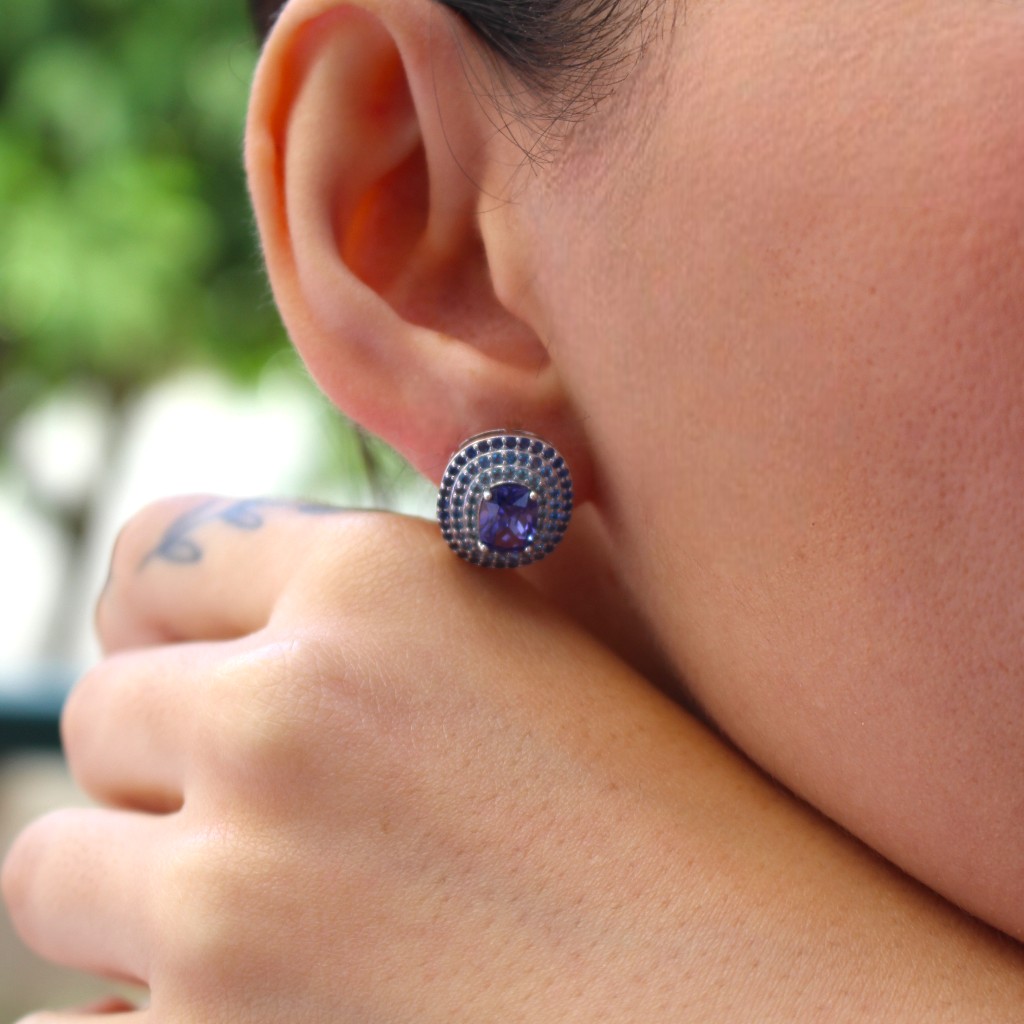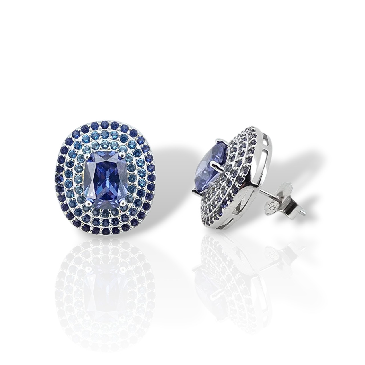 Ασημένια σκουλαρίκια, επιπλατινωμένα με συνθετικό μπλέ τοπάζι