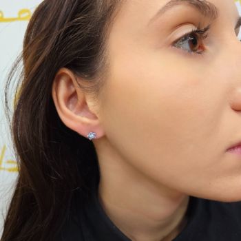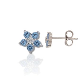 Ασημένια σκουλαρίκια, επιπλατινωμένα με συνθετικό μπλέ τοπάζι & λευκά ζιργκόν