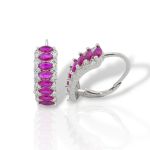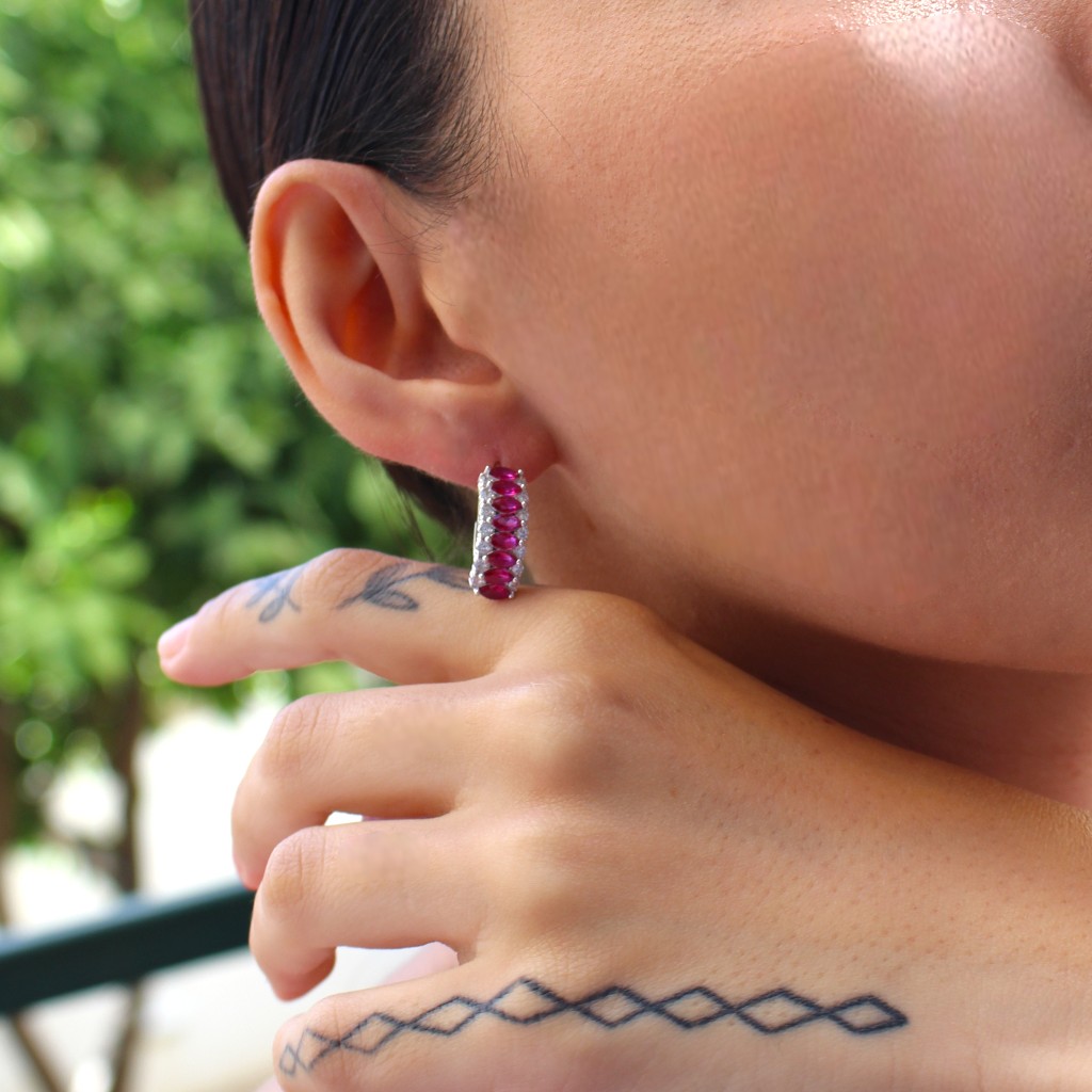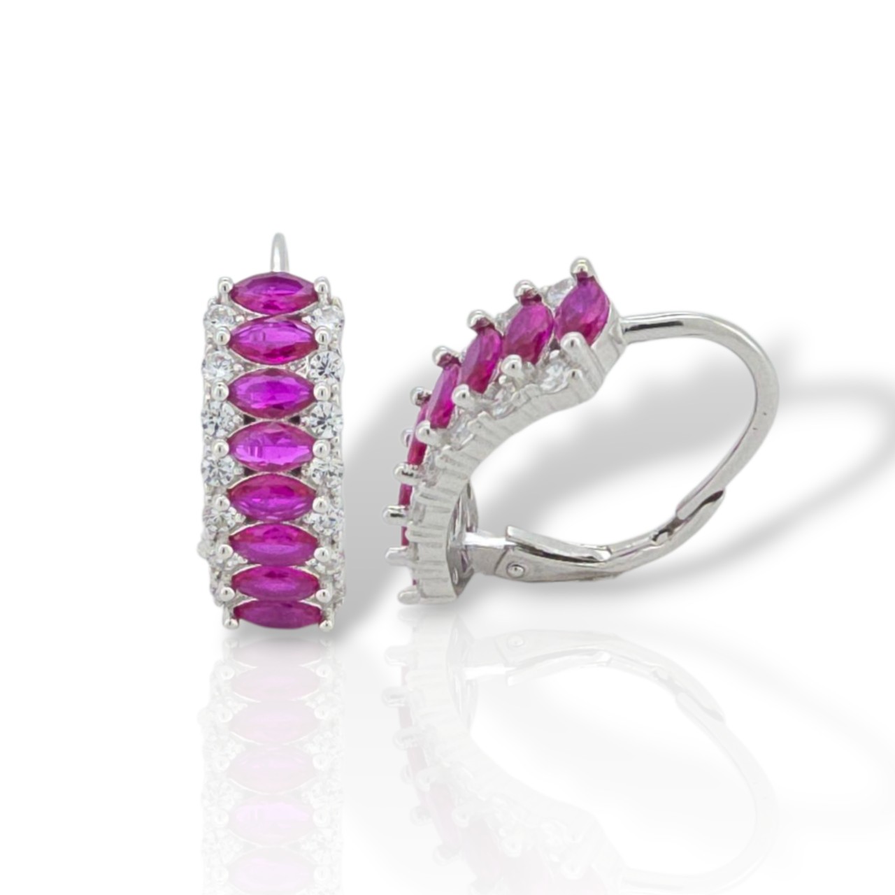 Ασημένια σκουλαρίκια, επιπλατινωμένα με λευκά ζιργκόν και συνθετικά ρουμπίνια.
