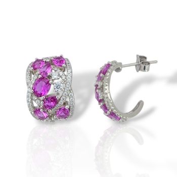 Ασημένια σκουλαρίκια, επιπλατινωμένα με συνθετικά ρουμπίνια & λευκά ζιργκόν
