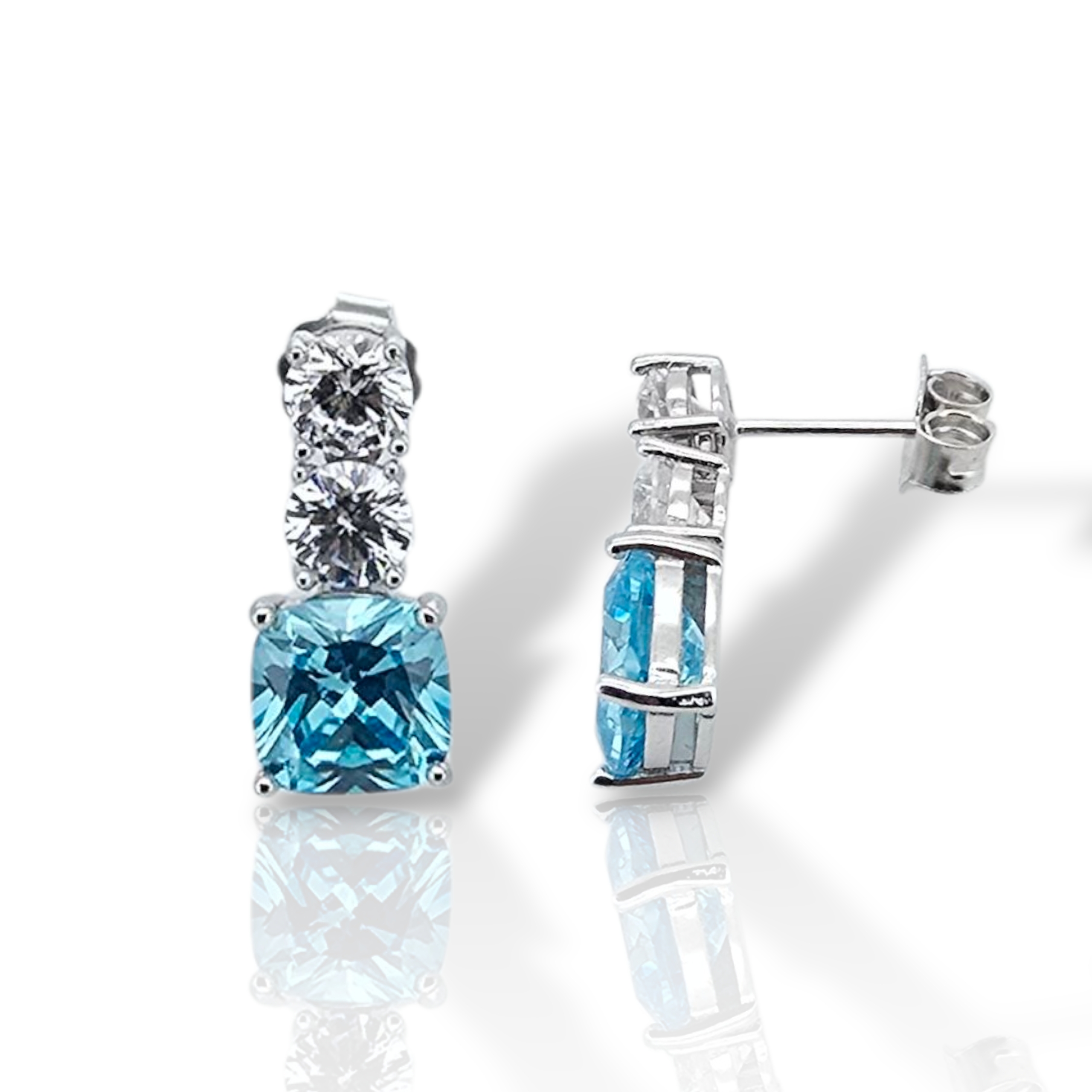 Ασημένια σκουλαρίκια, επιπλατινωμένα με συνθετικό μπλέ τοπάζι