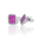 Ασημένια σκουλαρίκια, επιπλατινωμένα με συνθετικά ρουμπίνια