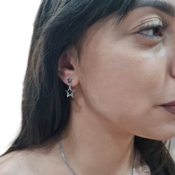 Ασημένια, επιπλατινωμένα σκουλαρίκια κρεμαστά με 2 αστεράκια