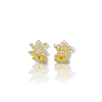 Σκουλαρίκια βάτραχος & κορώνα απο επιχρυσωμένο ασήμι 925° (code EA006928)