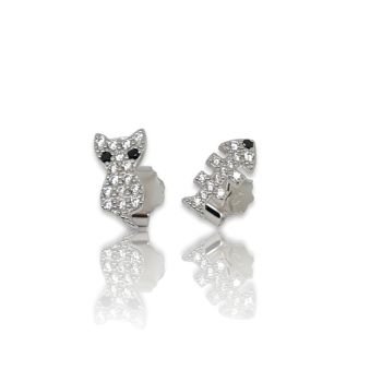 Σκουλαρίκια Γάτα & Ψαράκι απο επιπλατινωμένο ασήμι 925° (code FC008490)