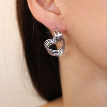 Ασημένια σκουλαρίκια επιπλατινωμένα με πολλαπλά κρικάκια σε σχήμα καρδιάς, που καταλήγουν σε καρφωτό κούμπωμα.