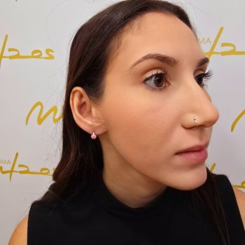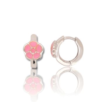 Σκουλαρίκια ασημένια, επιπλατινωμένο με ροζ σμάλτο