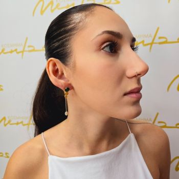 Ασημένια σκουλαρίκια επιχρυσωμένα με λευκά και συνθετικό σμαράγδι