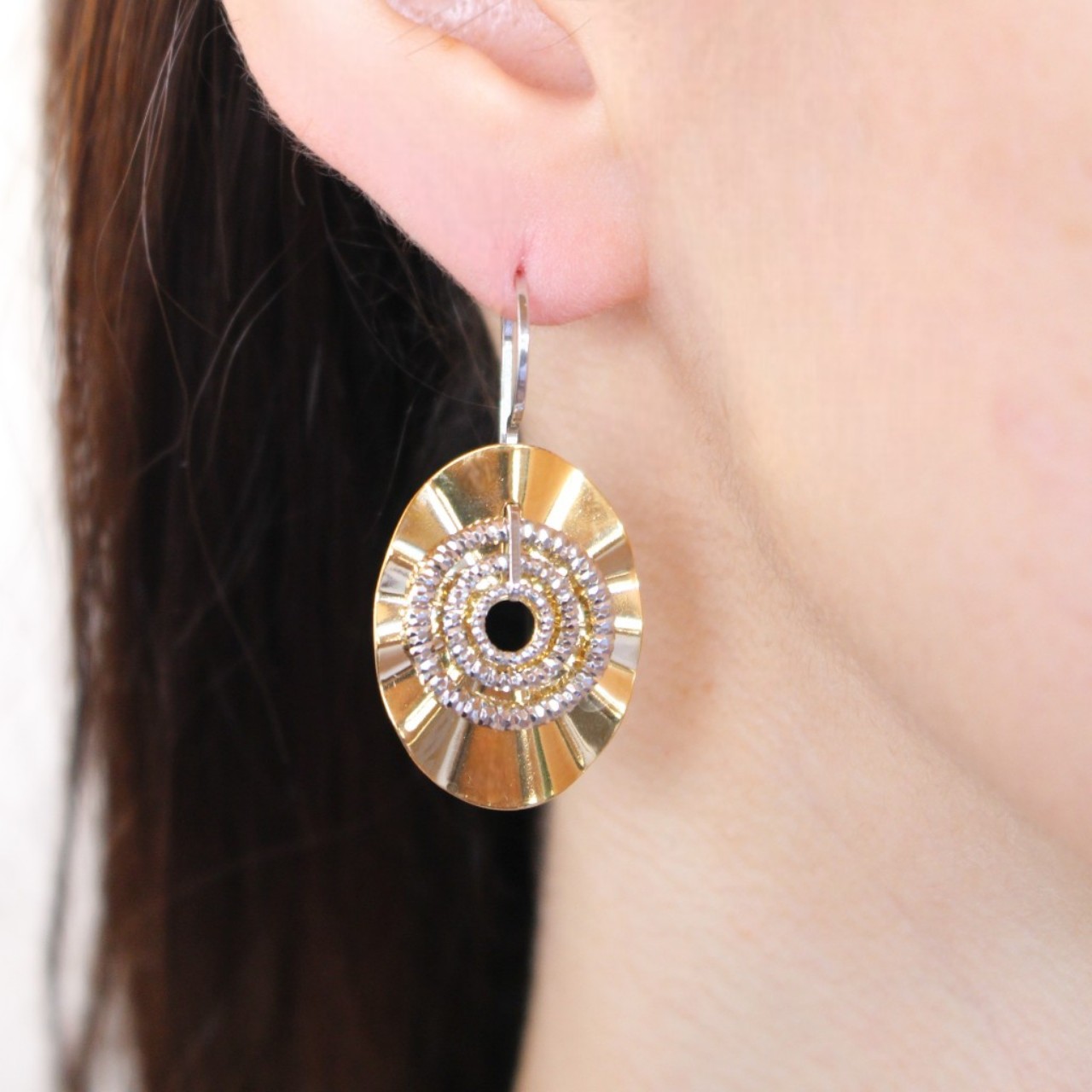 Ασημένια σκουλαρίκια επιχρυσωμένα σε σχήμα οβάλ με δύο διαφορετικές υφές και σχήματα.