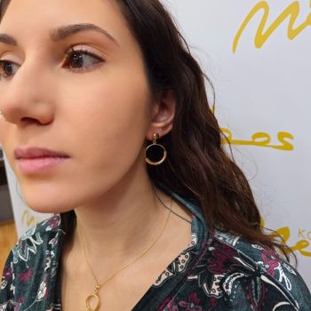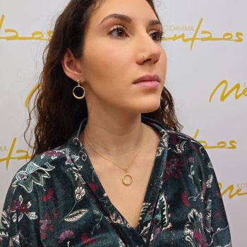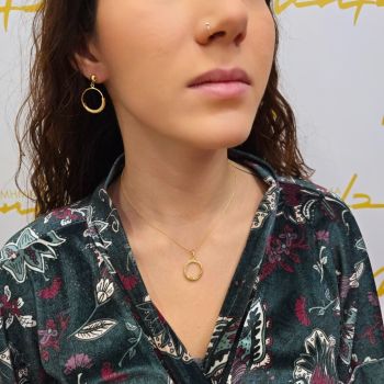 Ασημένια σκουλαρίκια επιχρυσωμένα κρεμαστά σε κυκλικό σχήμα με δύο υφές.