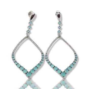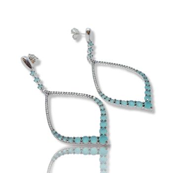 Ασημένια σκουλαρίκια επιπλατινωμένα, συνθετικά blue topaz & λευκά ζιργκόν