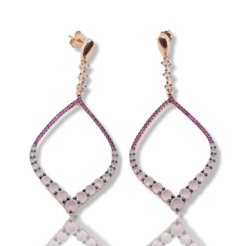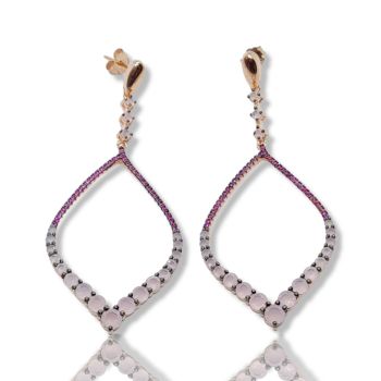 Ασημένια σκουλαρίκια επιχρυσωμένα με ροζ χρυσό, με συνθετικά ρουμίνια & ροζ ζιργκόν