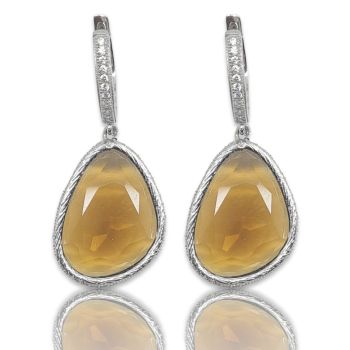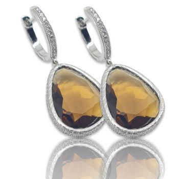 Ασημένια σκουλαρίκια επιπλατινωμένα με λευκά ζιργκόν και συνθετική πέτρα