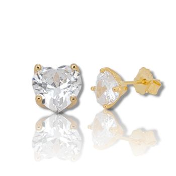 Σκουλαρίκια απο επιχρυσωμένο ασήμι 925° με λευκά ζιργκόν σε σχήμα καρδιά (code FC005061)