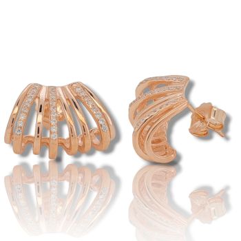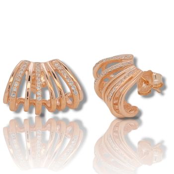 Ασημένια σκουλαρίκια ροζ χρυσό με λευκά ζιργκόν