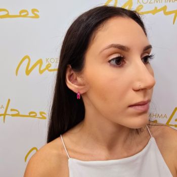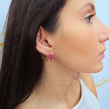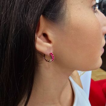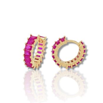 Ασημένια σκουλαρίκια επιχρυσωμένα με και συνθετικό ρουμπίνι.