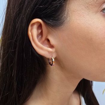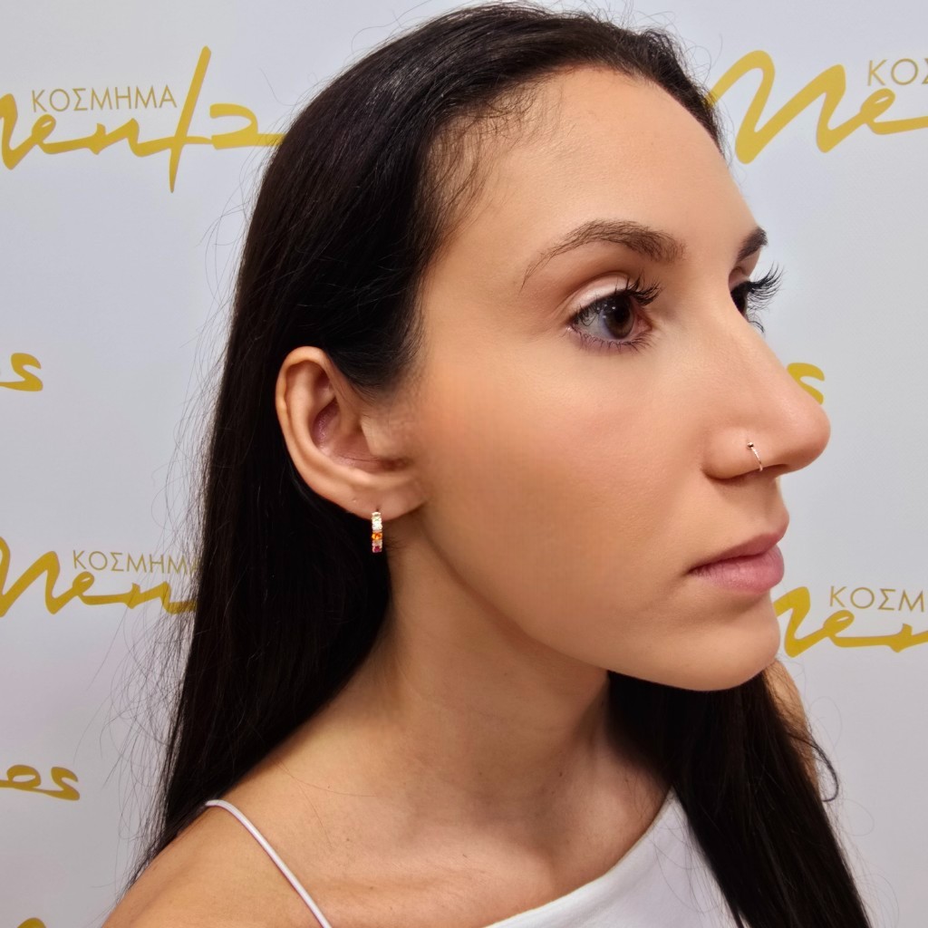 Ασημένια σκουλαρίκια επιχρυσωμένα ροζ με και συνθετικές πολύχρωμες πέτρες.