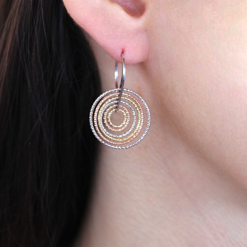 Ασημένια σκουλαρίκια επιπλατινωμένα με πολλαπλά κρικάκια τριών χρωμάτων.