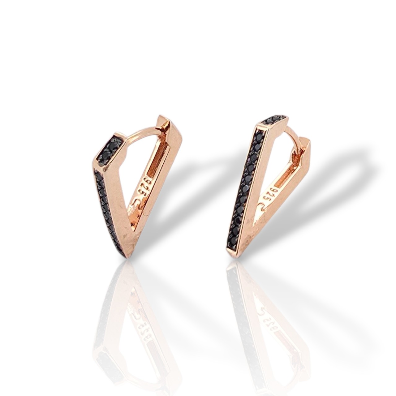 Ασημένια σκουλαρίκια επιχρυσωμένα με ροζ χρυσό & μαύρα ζιργκόν