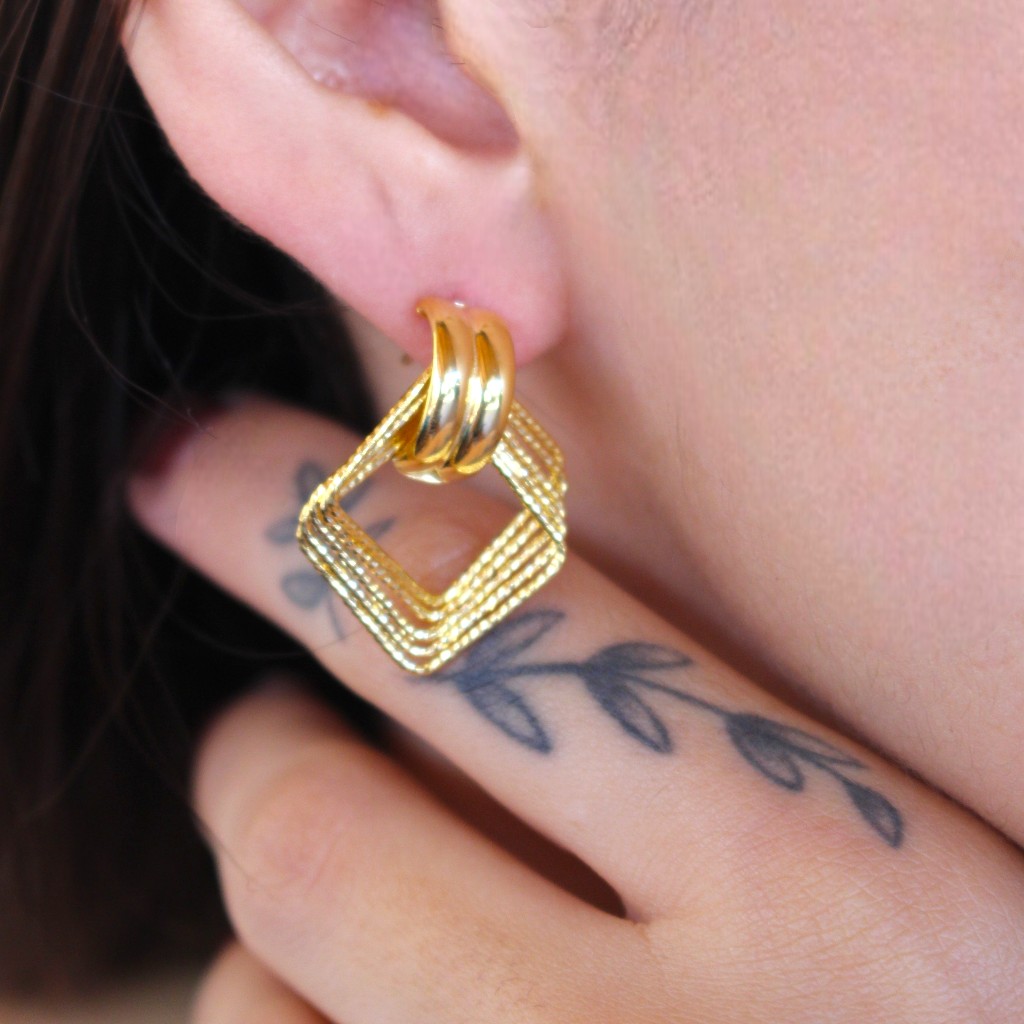 Ασημένια σκουλαρίκια επιχρυσωμένα με πολλαπλά κρικάκια ,ανάγλυφων και μη, που καταλήγουν σε καρφωτό κούμπωμα.