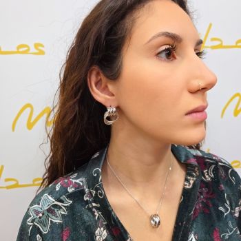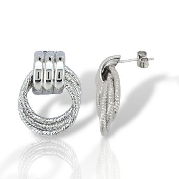 Ασημένια σκουλαρίκια επιπλατινωμένα με πολλαπλά κρικάκια ,ανάγλυφων και μη, που καταλήγουν σε καρφωτό κούμπωμα.
