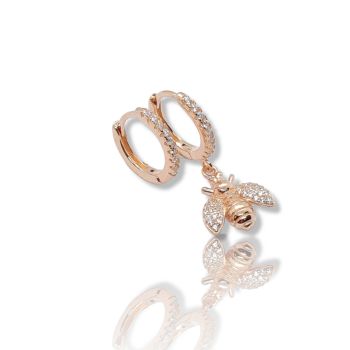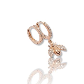 Σκουλαρίκια κρικάκια με μέλισσα απο ροζ επιχρυσωμένο ασήμι 925° (code FC002867)
