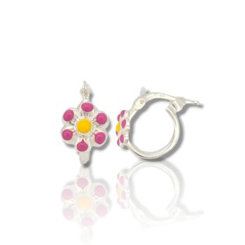 Σκουλαρίκια κρίκοι λουλουδάκι απο επιπλατινωμένο ασήμι 925° (code TX002855)