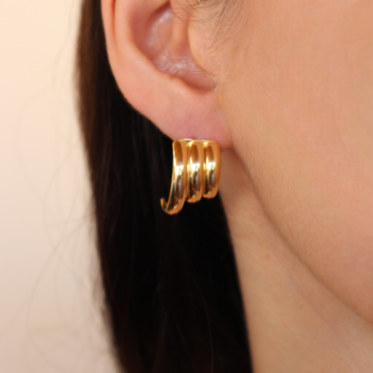 Ασημένια σκουλαρίκια επιχρυσωμένα με πολλαπλά κρικάκια που καταλήγουν σε καρφωτό κούμπωμα.