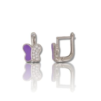 Σκουλαρίκια ασημένια, επιπλατινωμένο με πεταλούδα