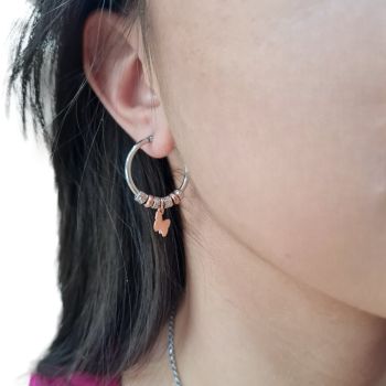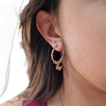 Σκουλαρίκια ασημένια, επιπλατινωμένο με επιχρυσωμένη (ροζ) πεταλούδα