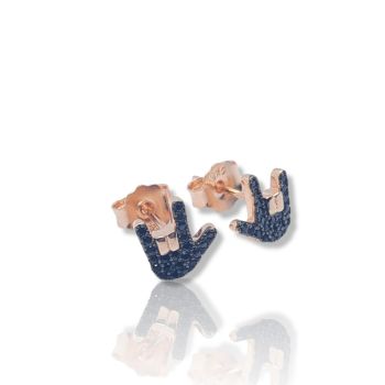 Ασημένια σκουλαρίκια επιχρυσωμένα με ροζ χρυσό με μαύρα ζιργκόν