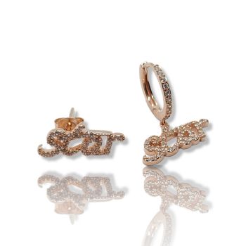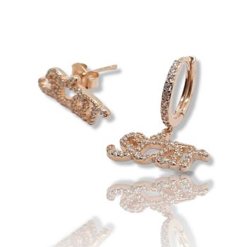 Ασημένια σκουλαρίκια επιχρυσωμένα με ροζ χρυσό και λευκά ζιργκόν