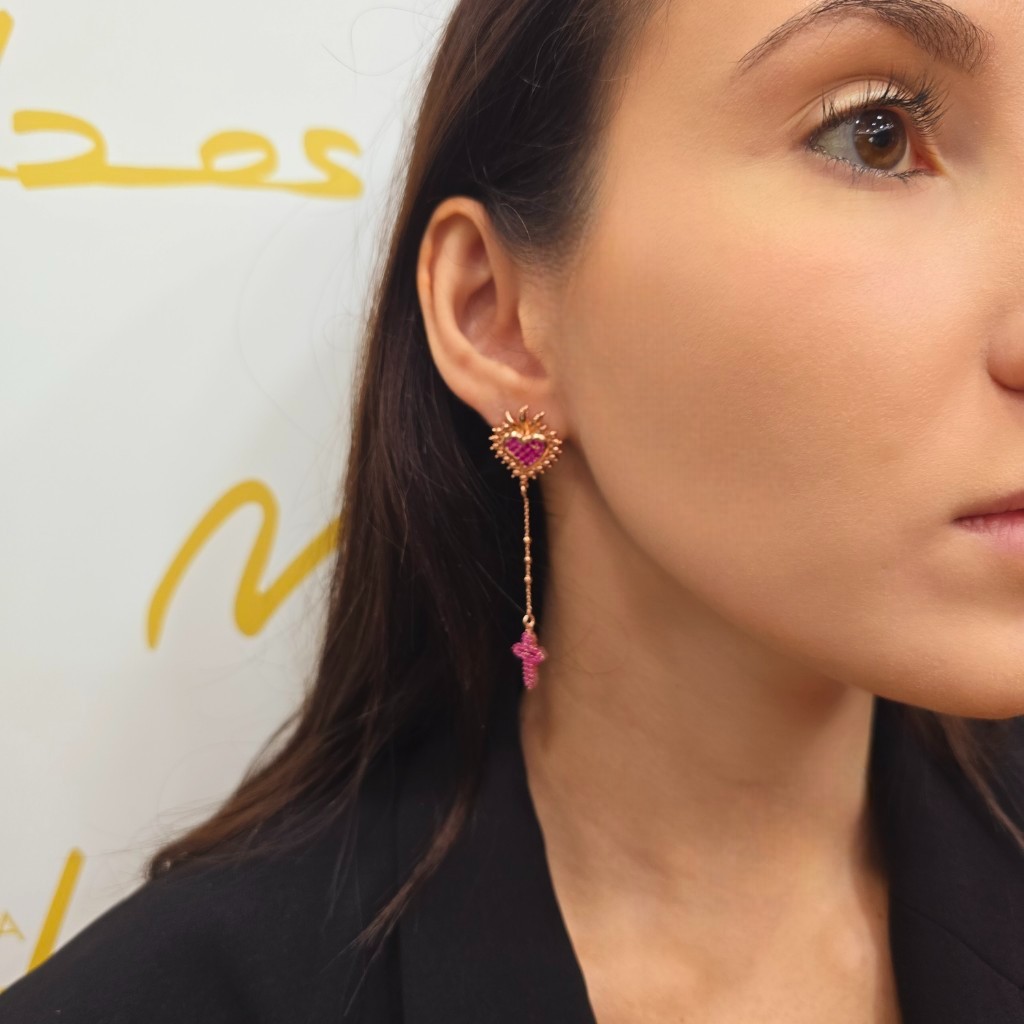 Τα σκουλαρίκια ICONA Lumae COR - Rosé Ruby Zirconia προσθέτουν μια κομψή και μοναδική πινελιά στο στυλ σας. Φτιαγμένα με ρουμπινί κυβικά ζιργκόν και διακοσμημένα με ιερή καρδιά, αυτά τα σκουλαρίκια θα μαγέψουν όποιον τα δει. Αφήστε τον εαυτό σας να κατακτηθεί από την ομορφιά και τον συμβολισμό αυτών των κοσμημάτων.