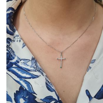 Σταυρός απο επιπλατινωμένο ασήμι 925º με λευκά ζιργκόν και συνθετικά σμαράγδια