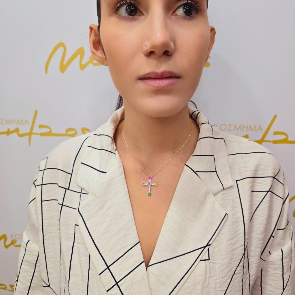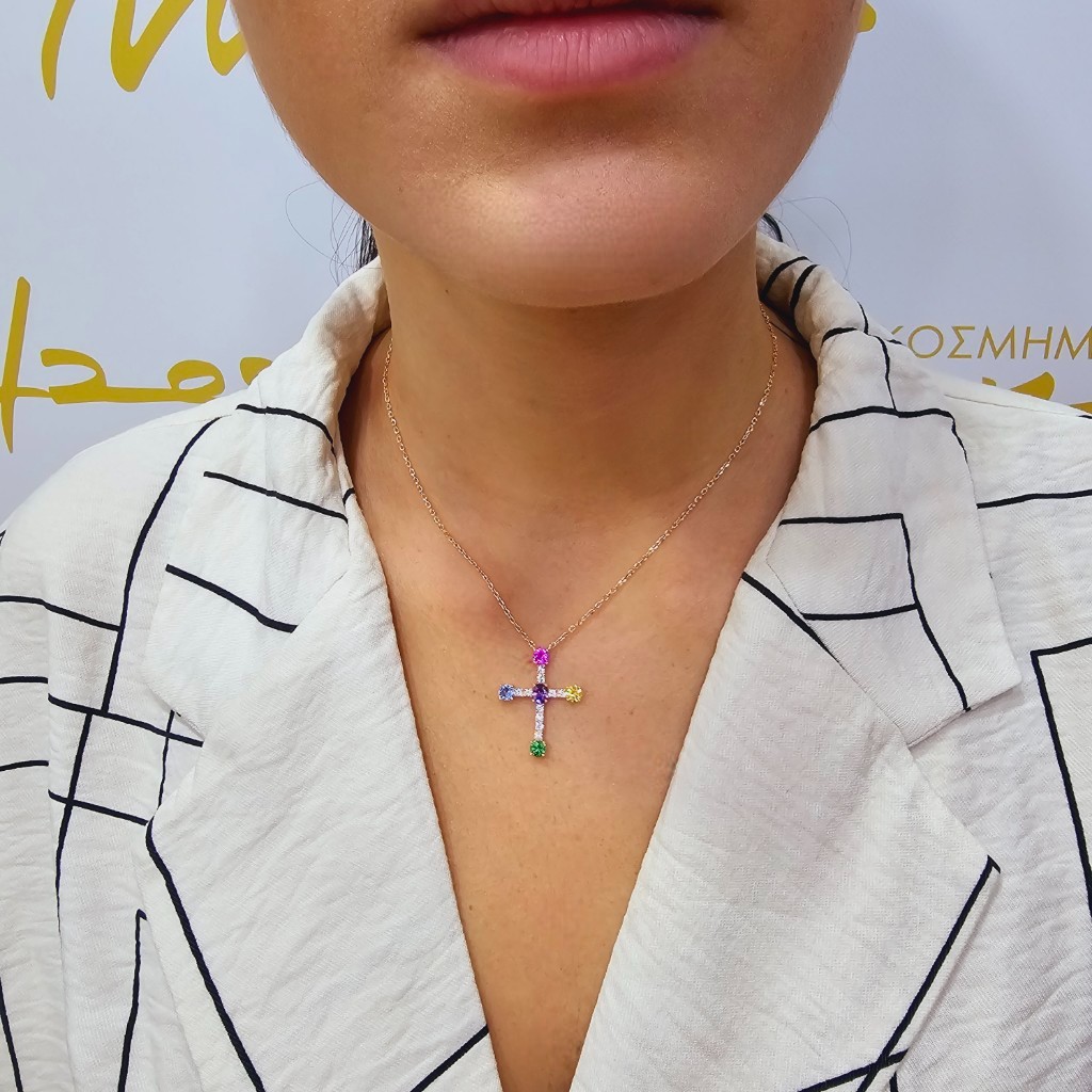 Σταυρός απο επιπλατινωμένο ασήμι 925º με πολύχρωμα ζιργκον.