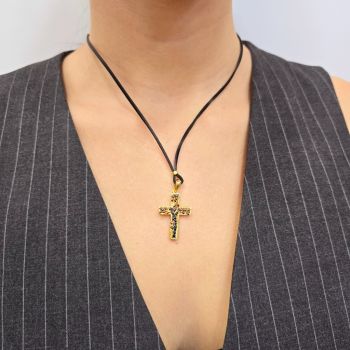 Σταυρός απο επιχρυσωμένο ασήμι 925º με μαυρα ζιργκόν