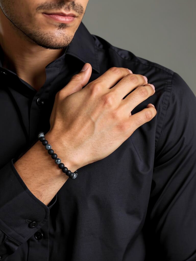 Ατσάλινο βραχιόλι Black flashtone & Balck onyx frosted 21mm (SB-1069-210)