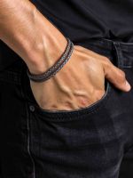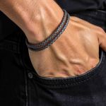 Ατσάλινο βραχιόλι με Γκρί δέρμα 19.5mm (SB-1055-195)
