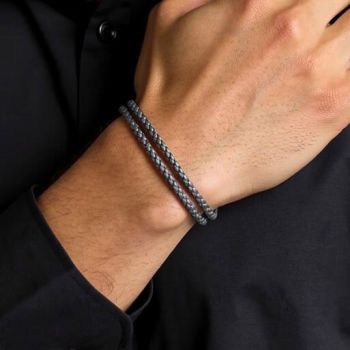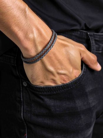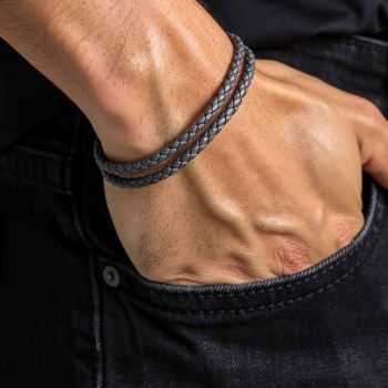 Ατσάλινο βραχιόλι με Γκρί δέρμα 21mm (SB-1055-210)