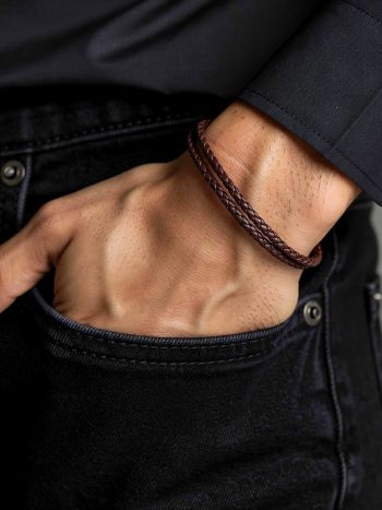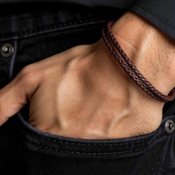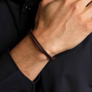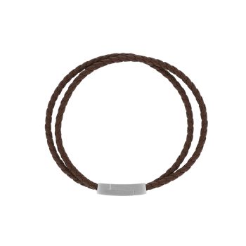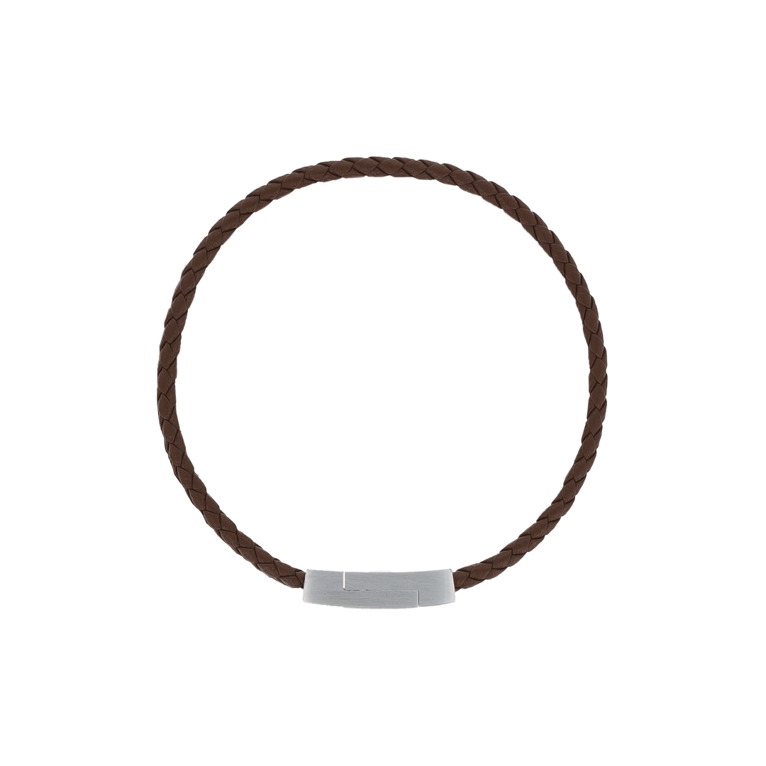 Ατσάλινο βραχιόλι με καφέ δέρμα 19.5mm (SB-1058-195)