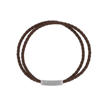 Ατσάλινο βραχιόλι με καφέ δέρμα 21mm (SB-1058-210)